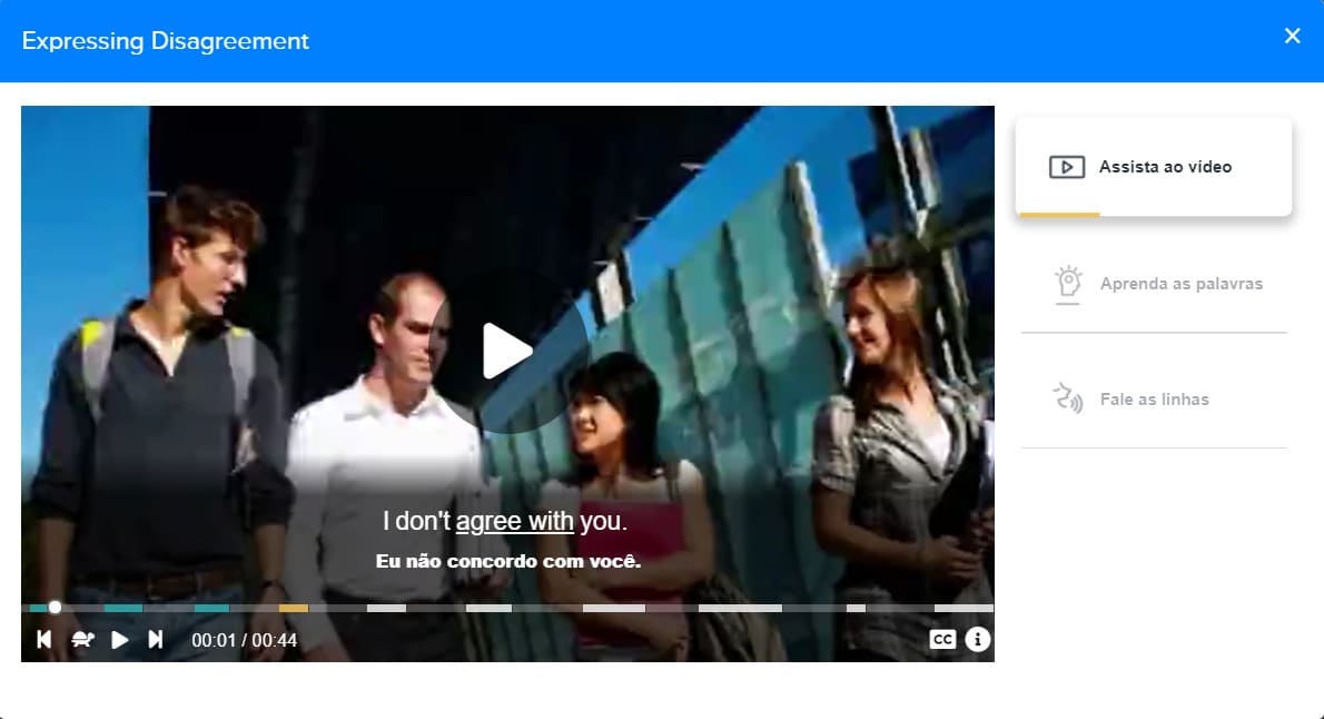 Aqui, você encontra lições e vídeos interativos para treinar as suas habilidades em leitura, escrita, compreensão e pronúncia.