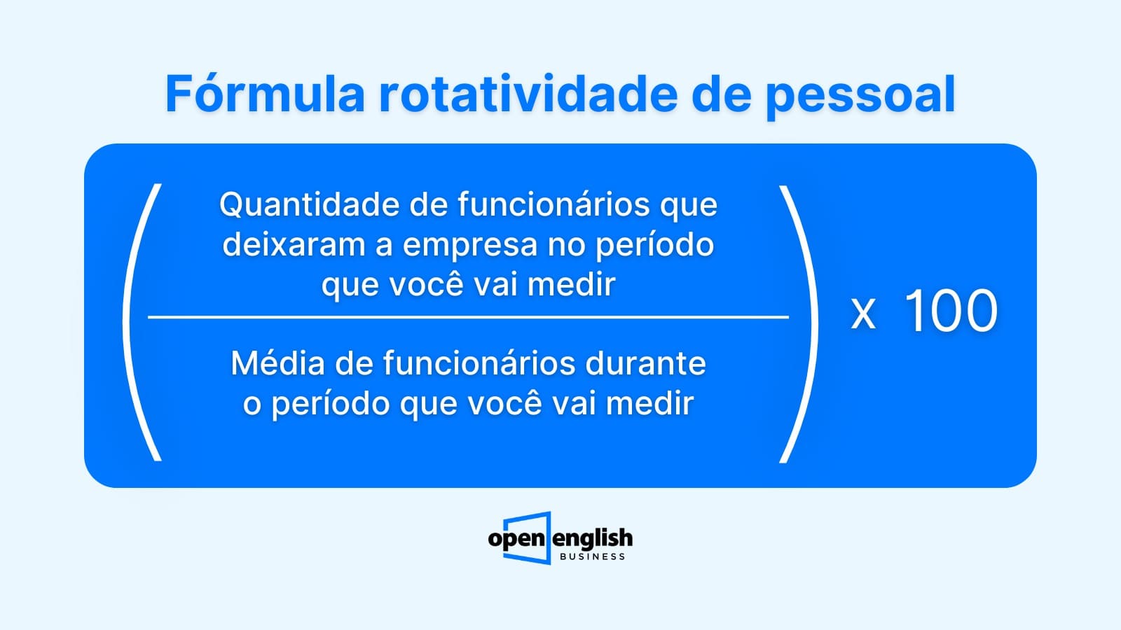 Para fazer o cálculo de rotatividade de pessoal na sua empresa, basta usar a fórmula a seguir: