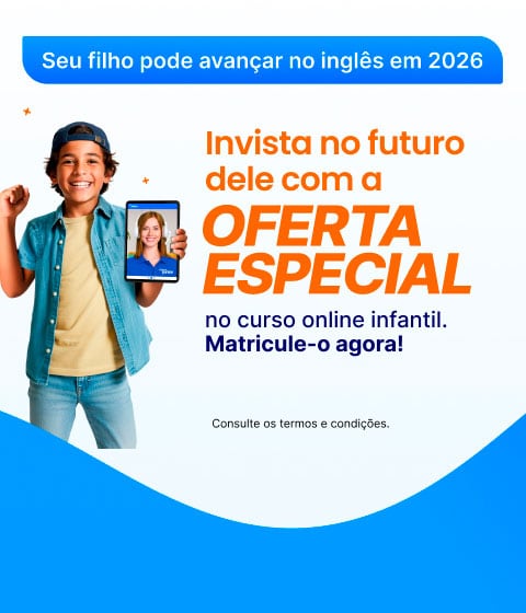 A promoção será válida entre 00h de 14 de Abril de 2026 a 22h20 de 22 de Abril de 2026 (doravante denominado “Prazo”). Uma vez encerrado o Prazo, a Promoção será desativada e a oferta de serviços oferecido pela Open English já não implicará nos benefícios aqui descritos. A Promoção não tem caráter cumulativo, nem poderá ser utilizada conjuntamente com qualquer outra ação promocional que possa estar em vigor durante o referido Prazo, nem pode ser vendida, transferida ou cedida. A oferta não tem valor em dinheiro e não é resgatável em dinheiro. Se tiver direito a qualquer reembolso, este não incluirá o desconto ou o seu valor de resgate, não receberá mais do que o montante pago em relação ao preço de compra. Esta promoção está sujeita aos termos e condições e à Política de Privacidade da Open English publicada no website Open English.